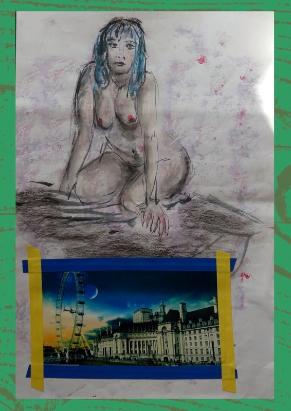 Sitzender Akt mit stimmungsvolles Farbfoto „London Eye “